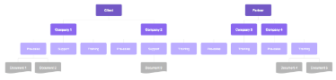 No matter how we organize our folder structure, some duplication is unavoidable. In this first example we start from the company type: Client or Partner, and we drill down to the activities, which are replicated for each of the four companies: