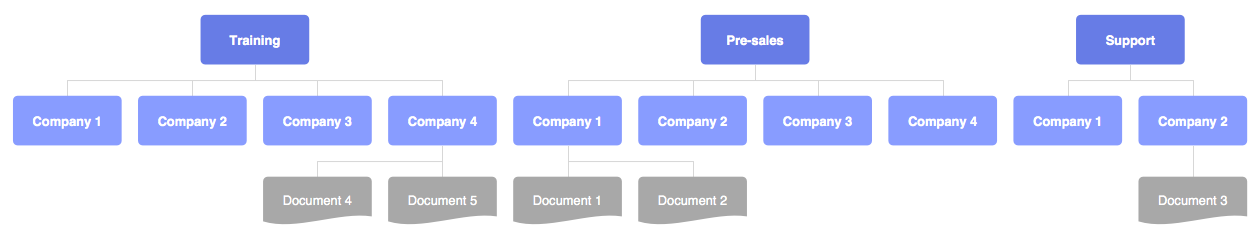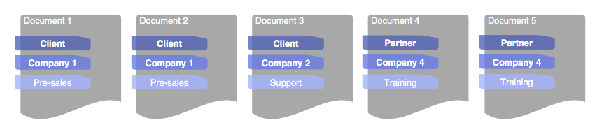 The best way to prove that tags are superior to folders is probably an example. Let's suppose that we work with different Companies, some of which are Clients, while some are Partners (for simplicity, let's assume that a client cannot be also a partner). With Clients, we can have documents relative to three activities: Pre-sales, Training, and Support. With Partners, we can only have documents related to Pre-sales and Training.