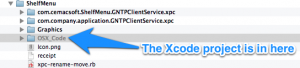 In the screenshot, com.cemacsoft.ShelfMenu.GNTPClientService.xpc is created during the build process by a script (see below). You need not to worry about this.